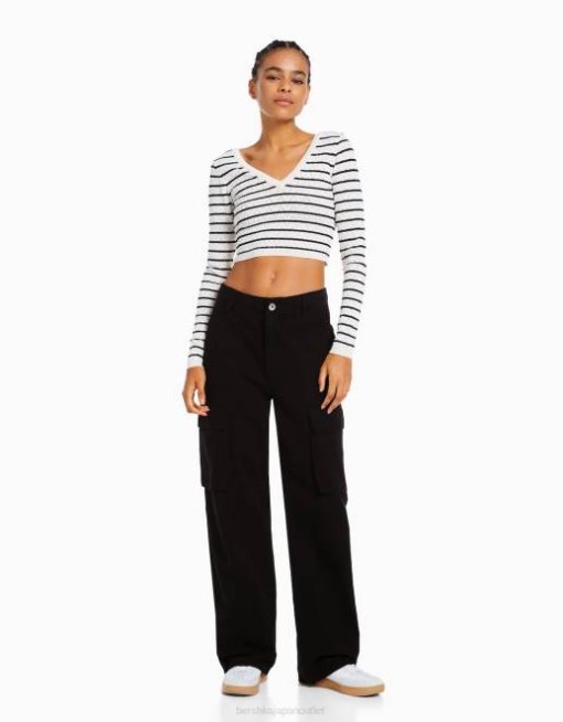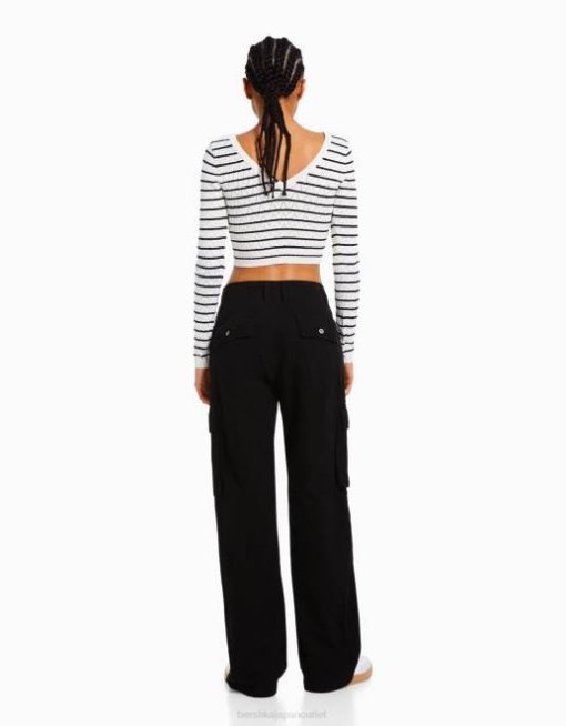 女性 Bershka ストレートフィットカーゴパンツ 60441307 衣類 黒