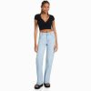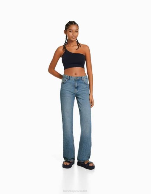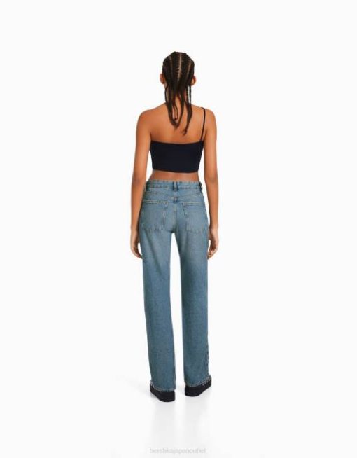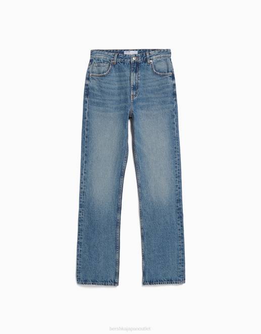 女性 Bershka ストレートフィットジーンズ 60441523 衣類 洗い流された青