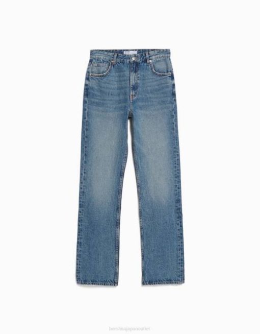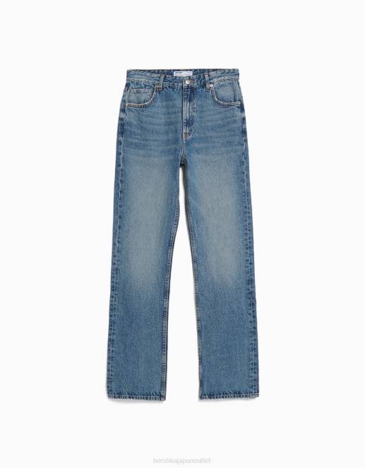 女性 Bershka ストレートフィットジーンズ 60441982 衣類 洗い流された青