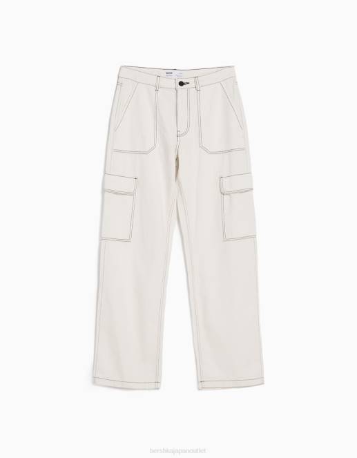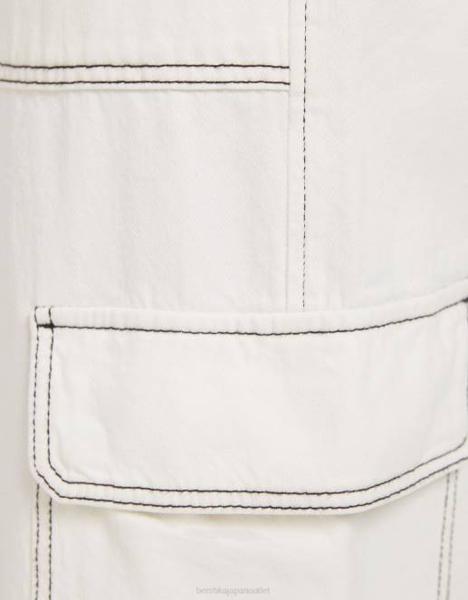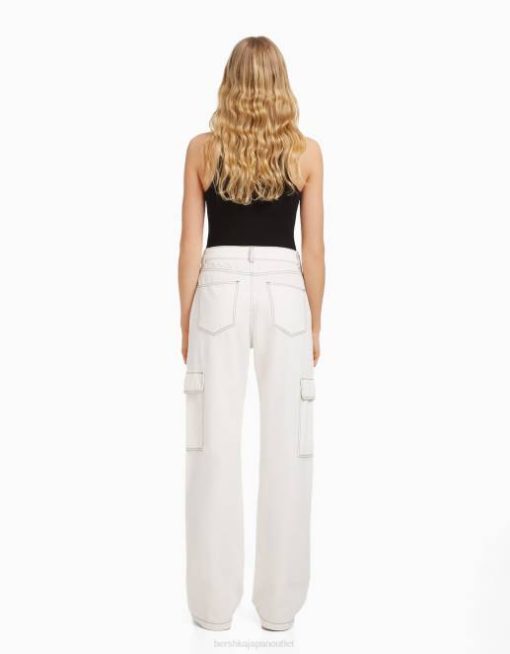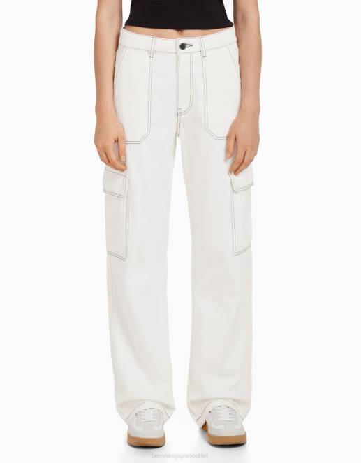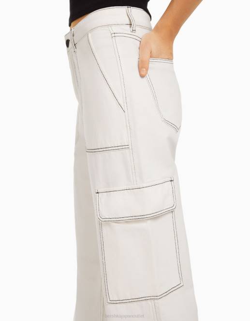 女性 Bershka ストレートフィット カーゴジーンズ 60441349 衣類 白