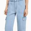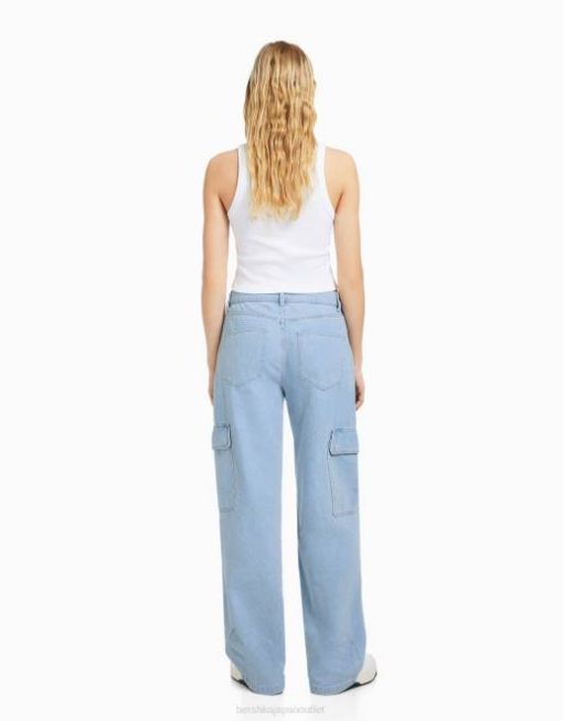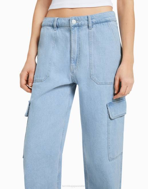 女性 Bershka ストレートフィット カーゴジーンズ 60441350 衣類 ライトブルー