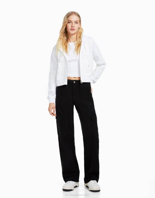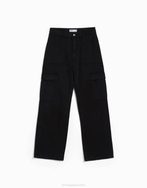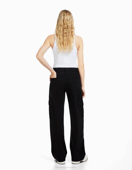 女性 Bershka ストレートフィット カーゴジーンズ 60441352 衣類 黒