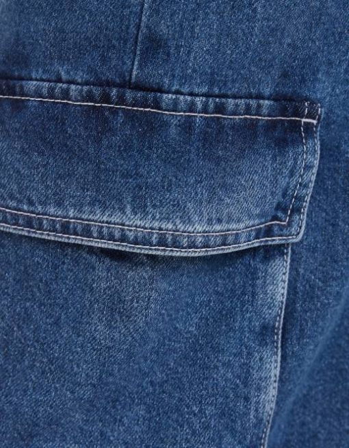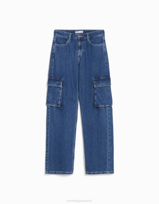 女性 Bershka ストレートフィット カーゴジーンズ 60441384 衣類 青
