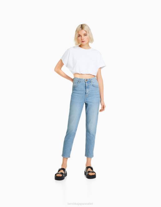 女性 Bershka スリムコンフォートフィットママジーンズ 60441521 衣類 ライトブルー