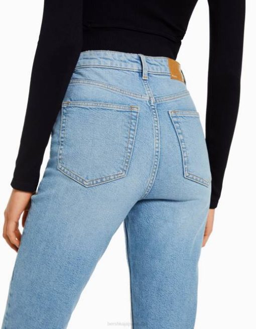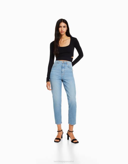 女性 Bershka スリムコンフォートフィットママジーンズ 60441992 衣類 ライトブルー