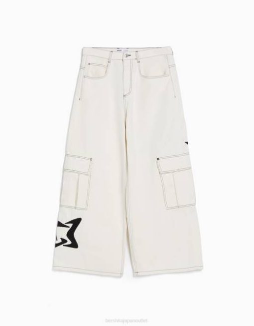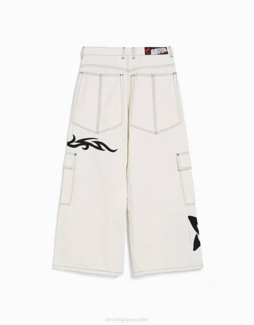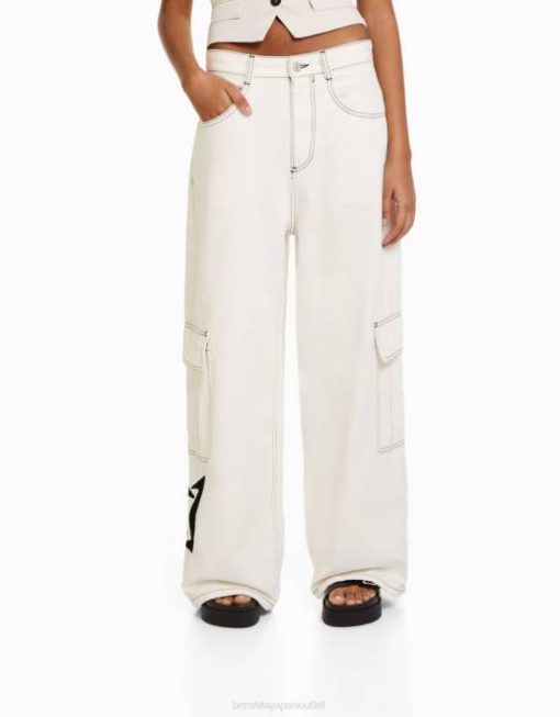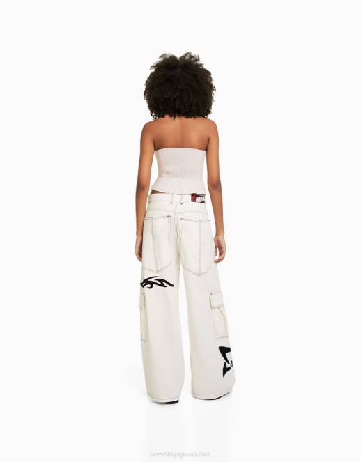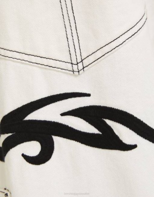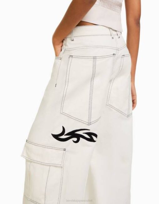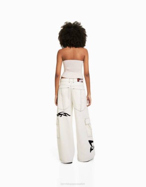 女性 Bershka スーパーバギー 刺繍入り 90s ジーンズ 60441577 衣類 白