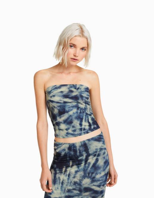 女性 Bershka タイダイ効果のバンドゥトップ 6044676 衣類 青