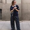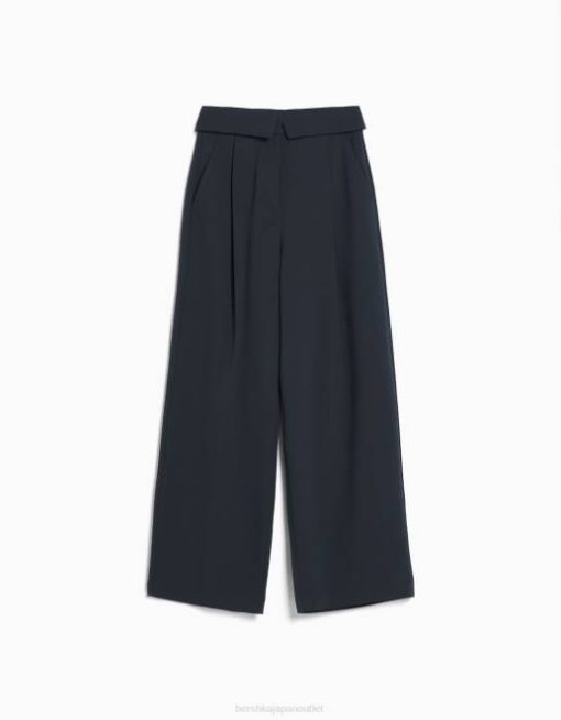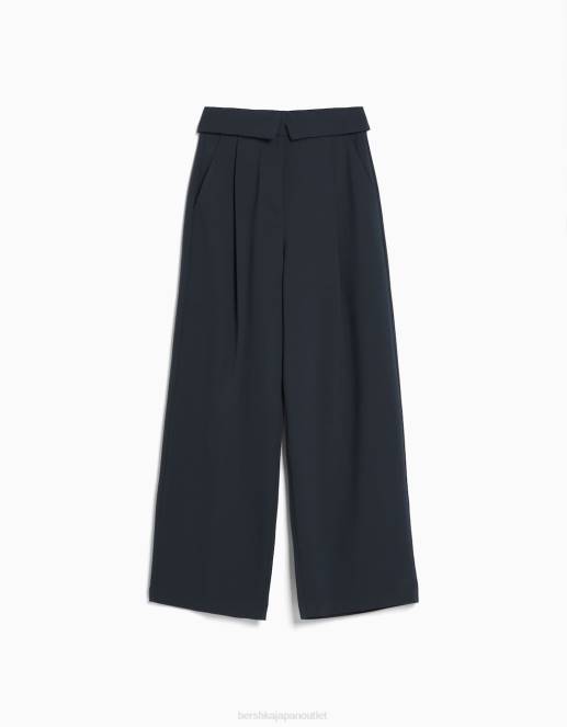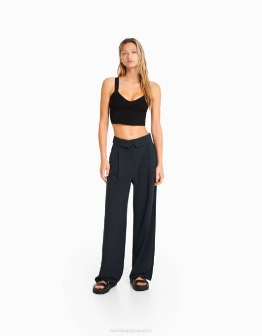 女性 Bershka ターンアップウエスト付きテーラードパンツ 60441429 衣類 濃い灰色