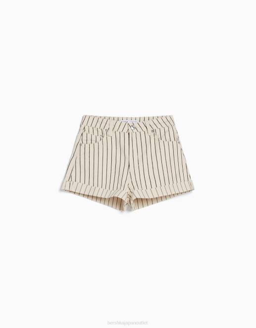 女性 Bershka ターンアップヘム付きコンフォートツイルショーツ 60441698 衣類 クリーム