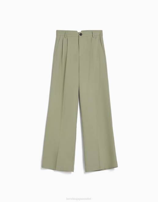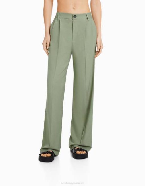 女性 Bershka ダッドフィット テーラードパンツ 60441431 衣類 カーキ