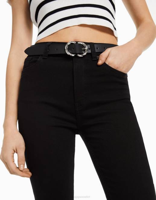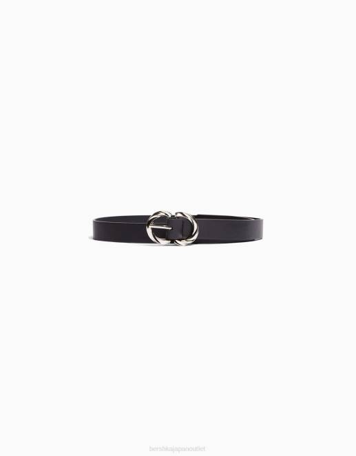女性 Bershka ダブルバックル付きの細いベルト 60442553 アクセサリー 洗わないでください