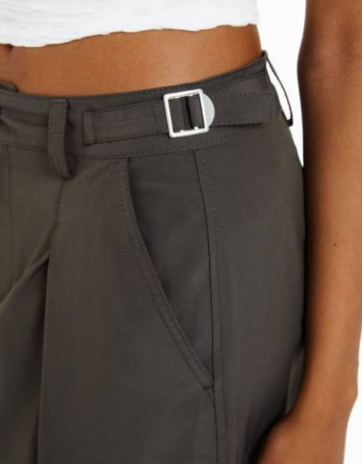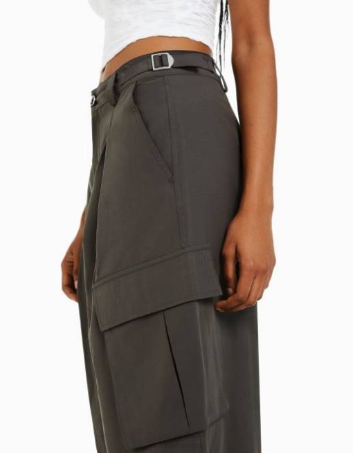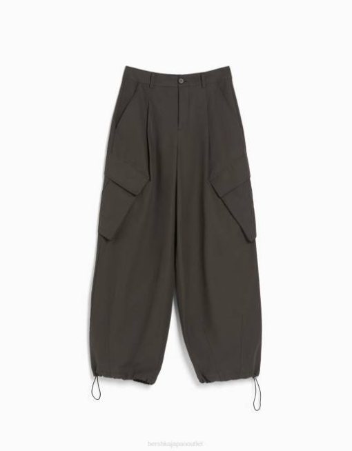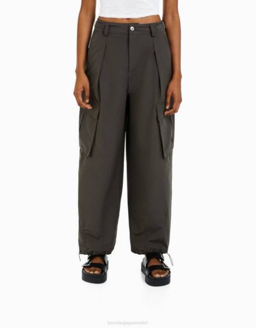 女性 Bershka ダーツ入りコットン&ナイロン混紡カーゴパンツ 60441347 衣類 カーキ