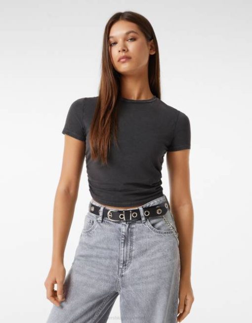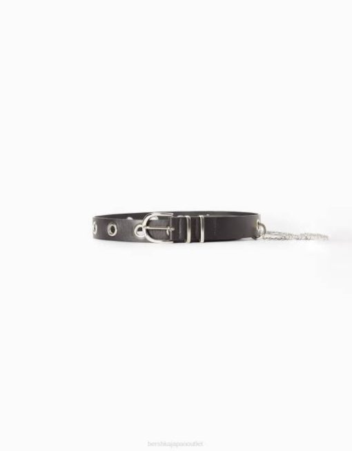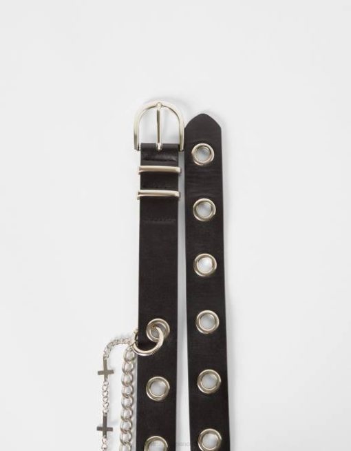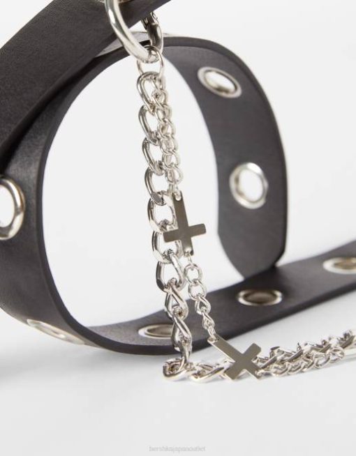 女性 Bershka チェーンアイレットとクロスが付いたベルト 60442550 アクセサリー 黒