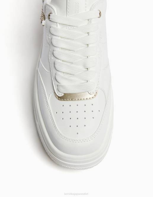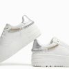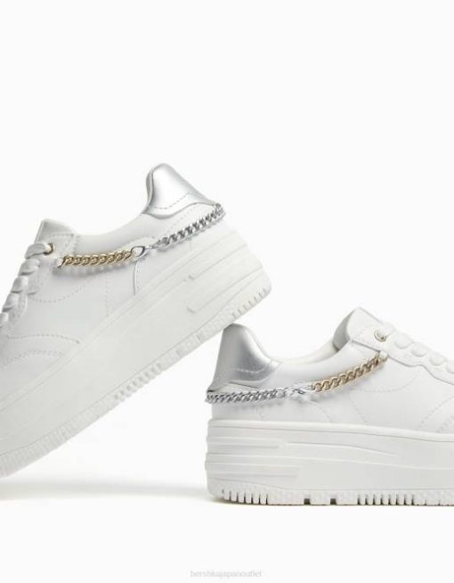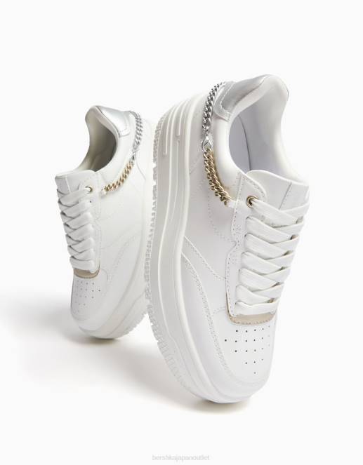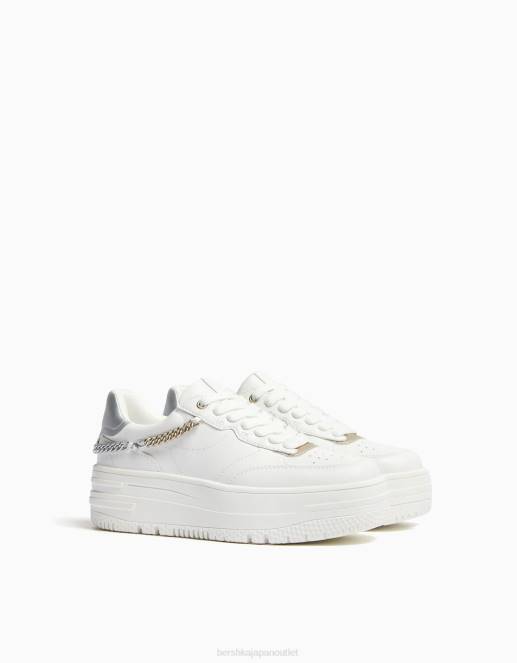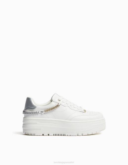 女性 Bershka チェーンディテール付きプラットフォームスニーカー 60442122 履物 白