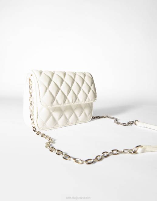 女性 Bershka チェーンハンドル付きキルティングハンドバッグ 60442362 アクセサリー 白