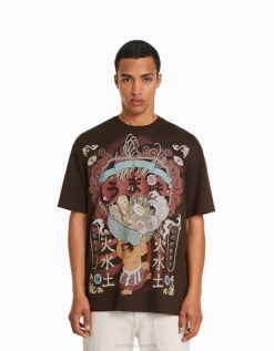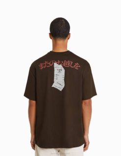女性 Bershka チュールラグランスリーブ風長袖Tシャツ 6044429 衣類 茶色