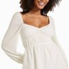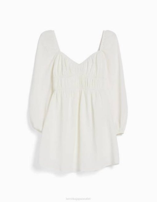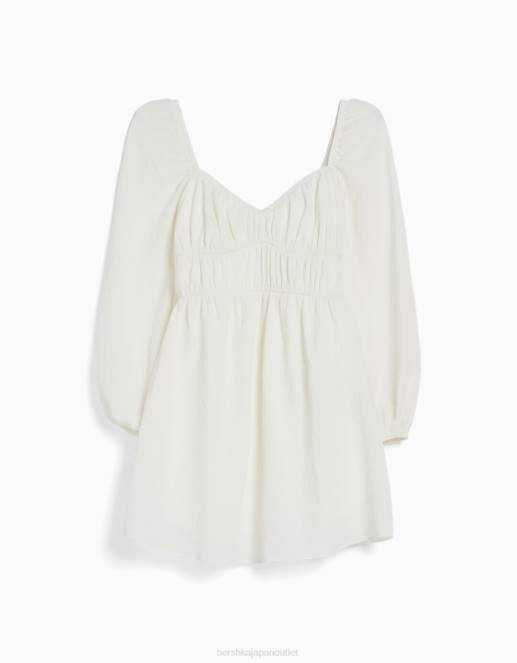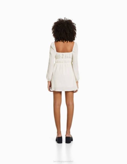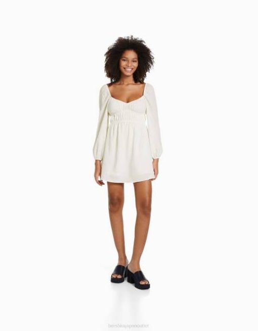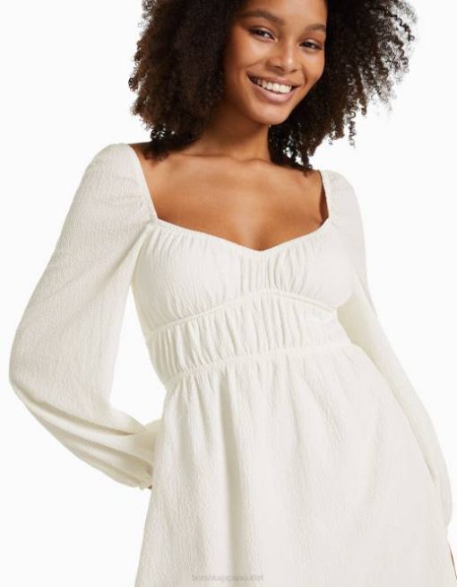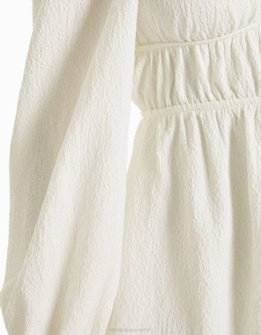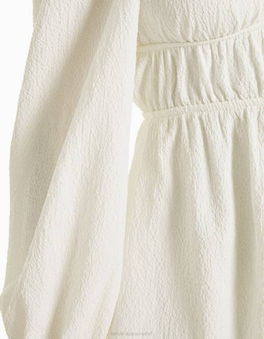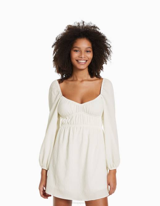女性 Bershka テクスチャードウィーブ 長袖 ミニドレス 6044224 衣類 クリーム