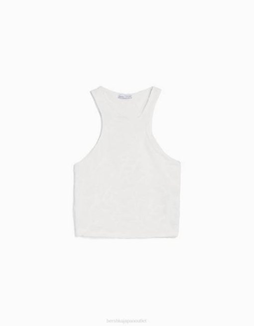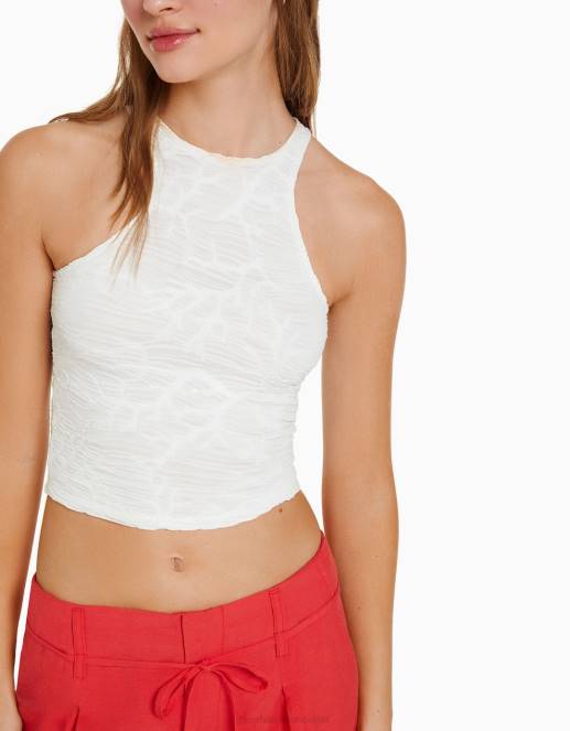 女性 Bershka テクスチャード レーサーネック ノースリーブ Tシャツ 6044376 衣類 クリーム