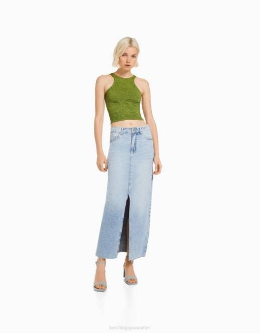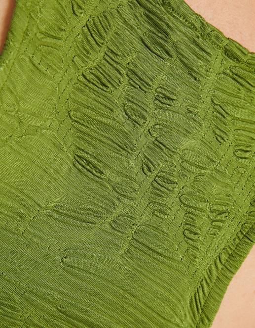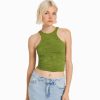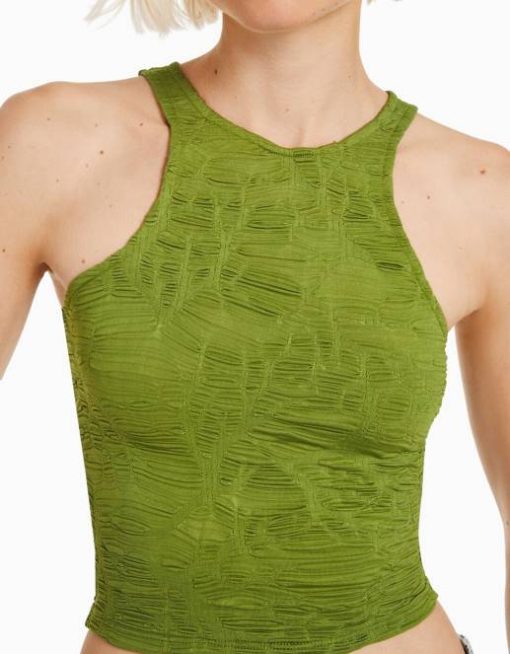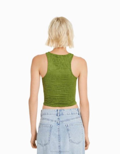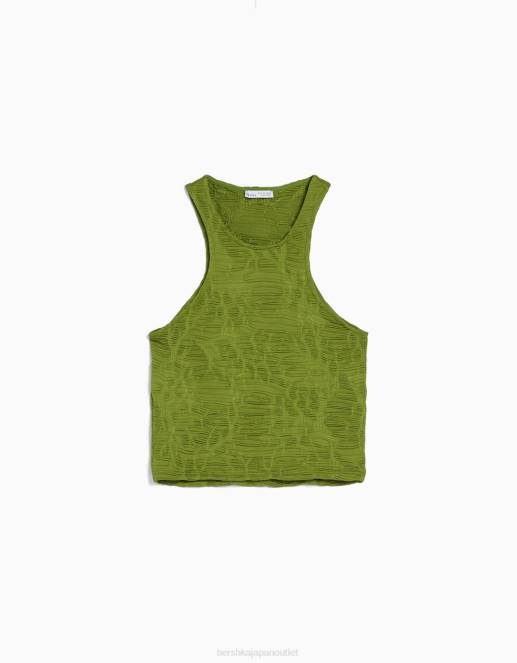女性 Bershka テクスチャード レーサーネック ノースリーブ Tシャツ 6044377 衣類 カーキ