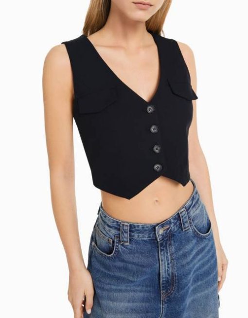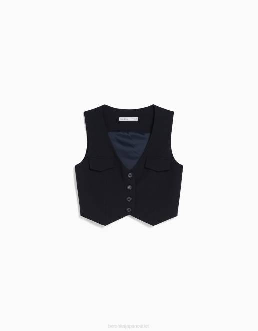 女性 Bershka テーラードボタンベスト 60441187 衣類 濃紺