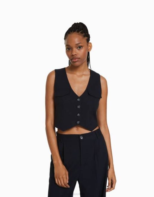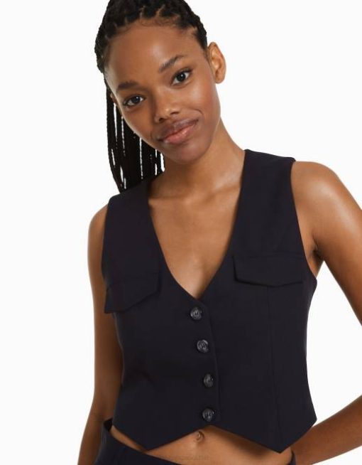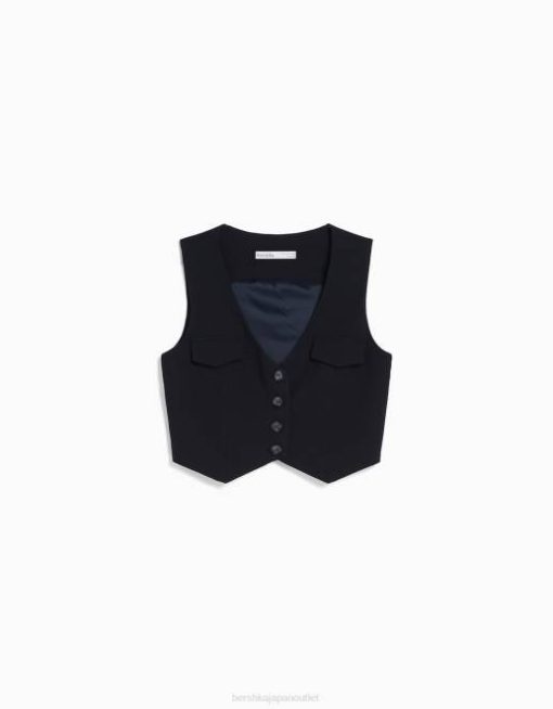 女性 Bershka テーラードボタンベスト 6044850 衣類 濃紺