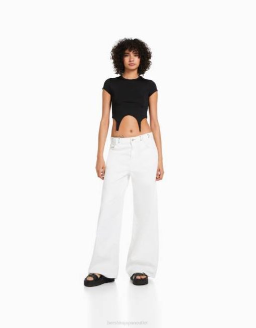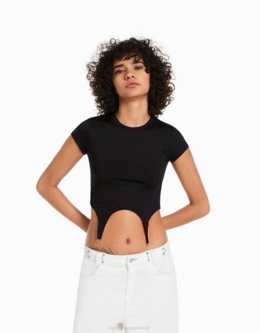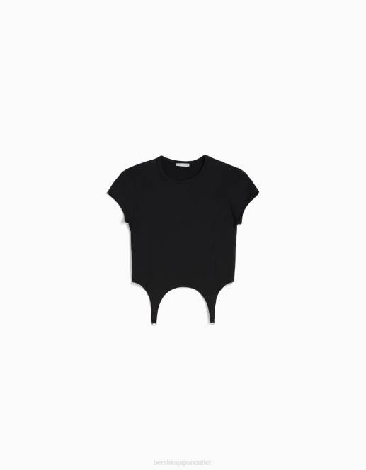 女性 Bershka ディテール付き半袖Tシャツ 6044511 衣類 黒