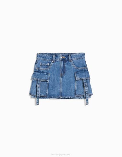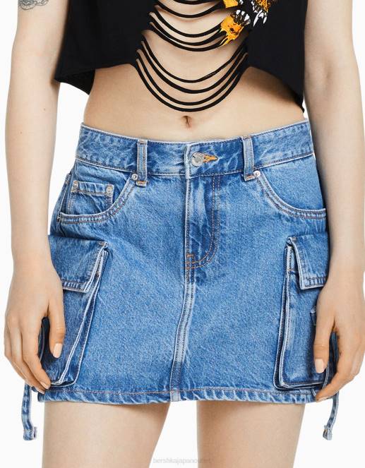 女性 Bershka デニムミニカーゴスカート 60444005 衣類 ライトブルー