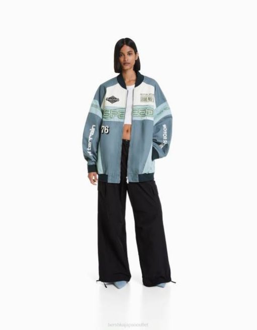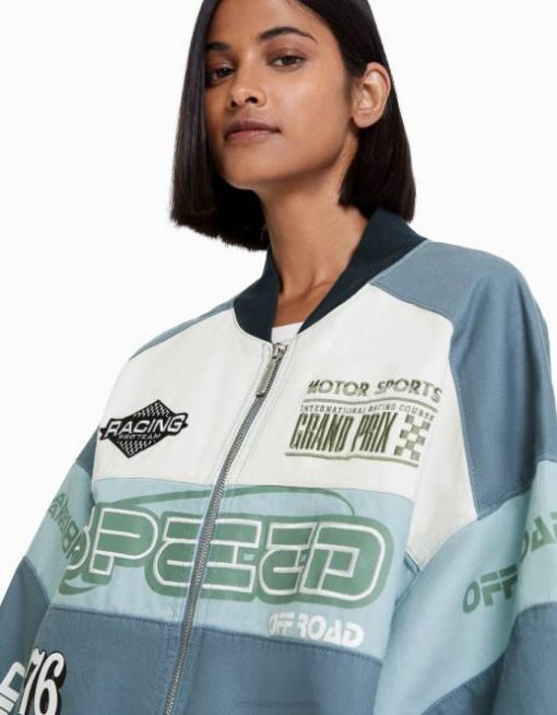 女性 Bershka デニムレーシングジャケット 60441174 衣類 青