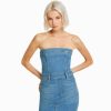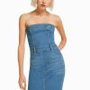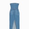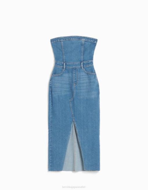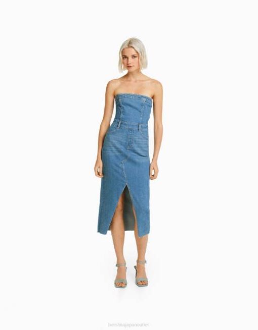 女性 Bershka デニムロングバンドゥドレス 604416 衣類 ライトブルー
