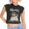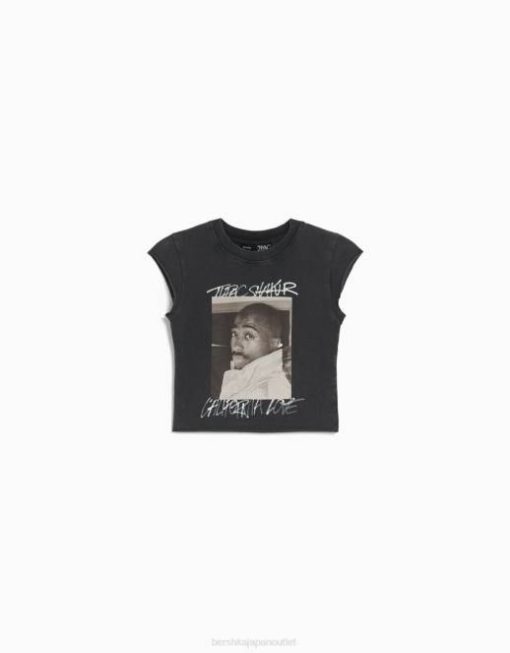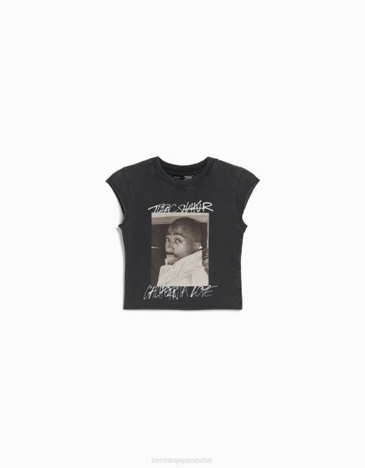 女性 Bershka トゥパック ノースリーブ クロップド プリント T シャツ 6044290 衣類 グレー