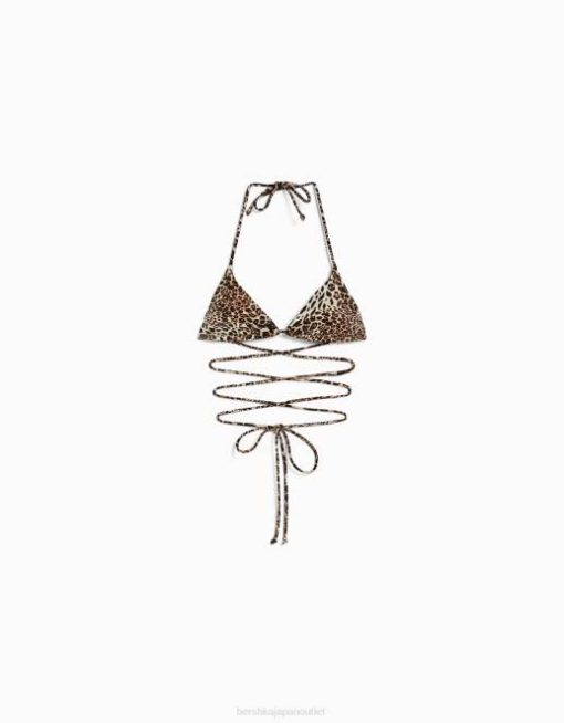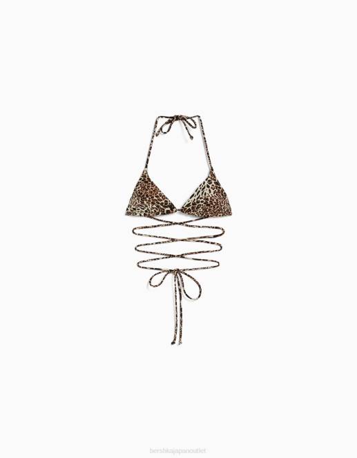 女性 Bershka トライアングルアニマルプリントビキニトップ 60441769 衣類 黒