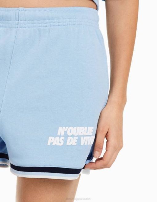 女性 Bershka トリム付きプリントプラッシュショーツ 60441734 衣類 ライトブルー