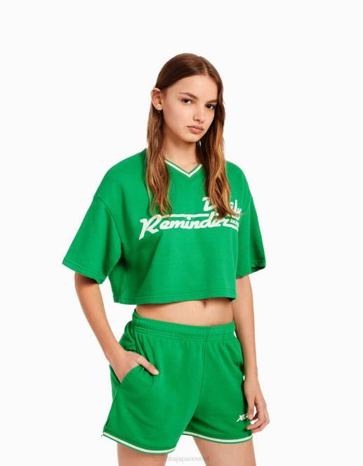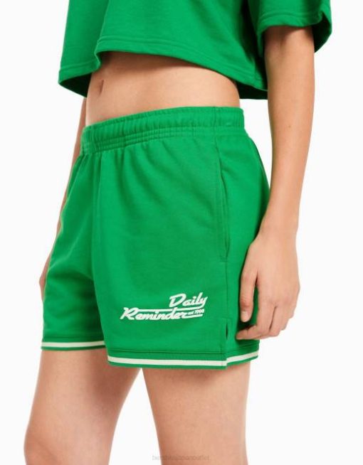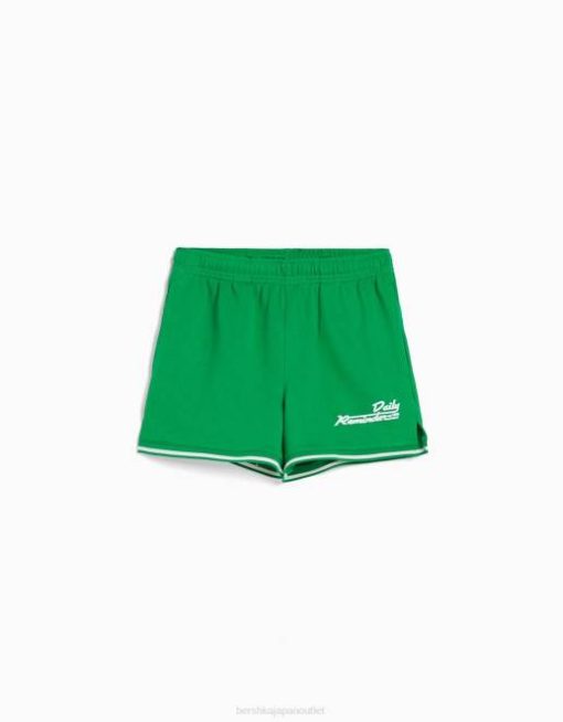女性 Bershka トリム付きプリントプラッシュショーツ 60441735 衣類 緑