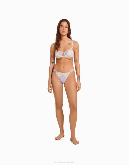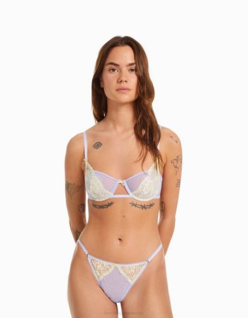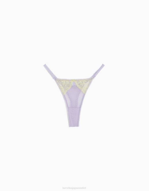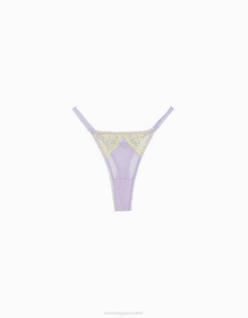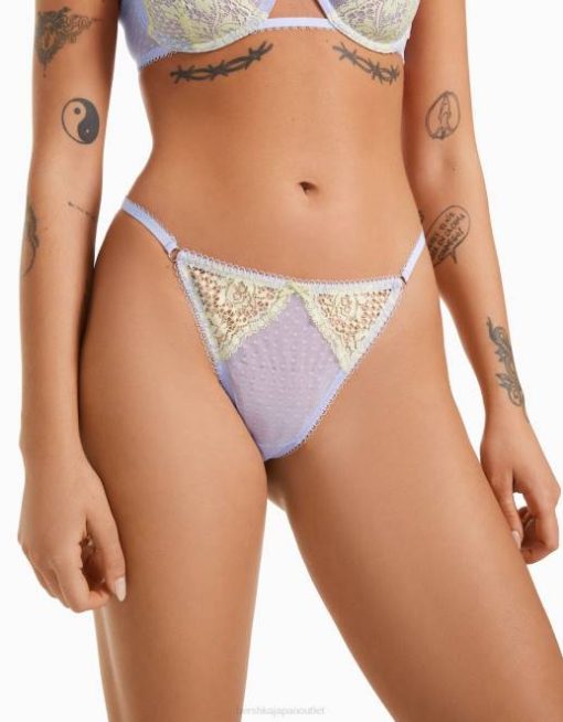 女性 Bershka ドットメッシュブロンドレースTバック 60441742 衣類 バイオレット