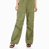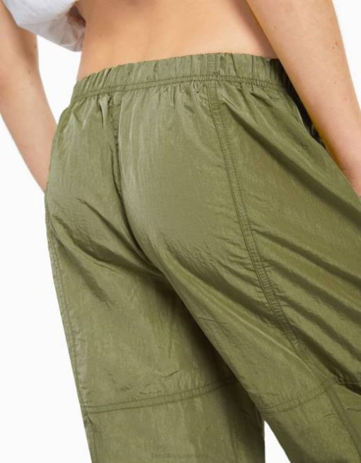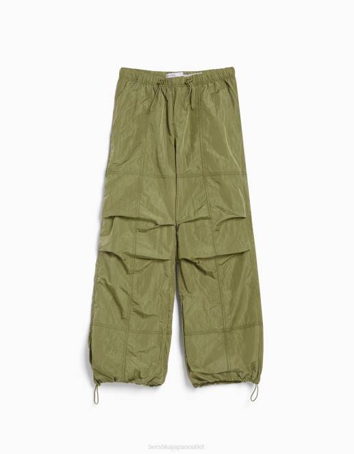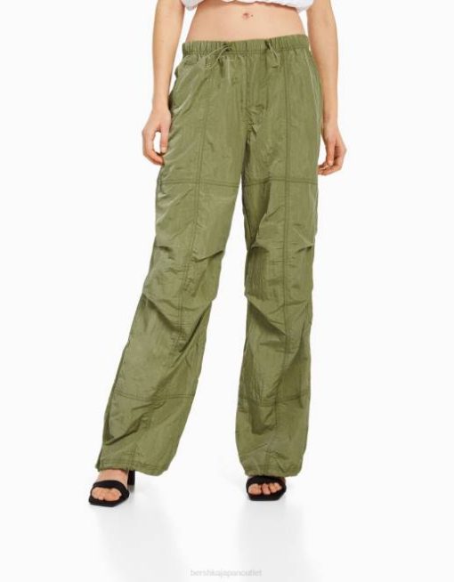 女性 Bershka ナイロンパラシュートパンツ 60441387 衣類 カーキ
