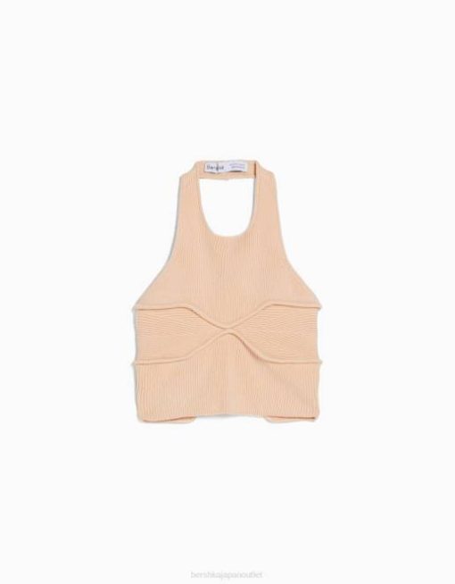 女性 Bershka ニットディテール ホルタートップ 6044852 衣類 オレンジ