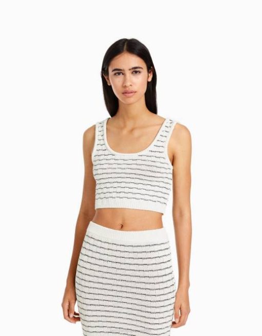 女性 Bershka ニットトップスとスカートのセット 6044986 衣類 白