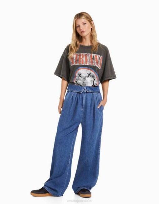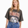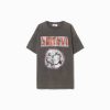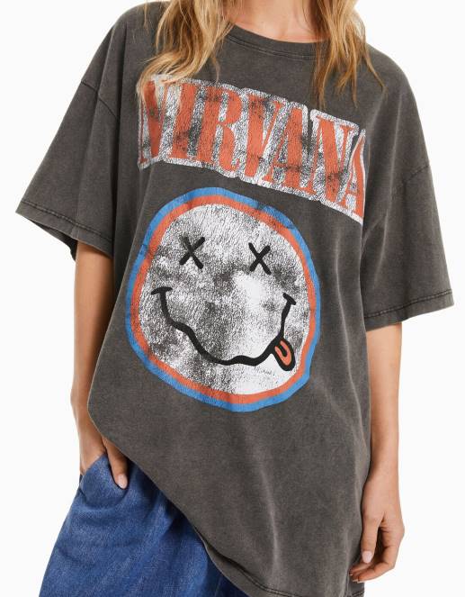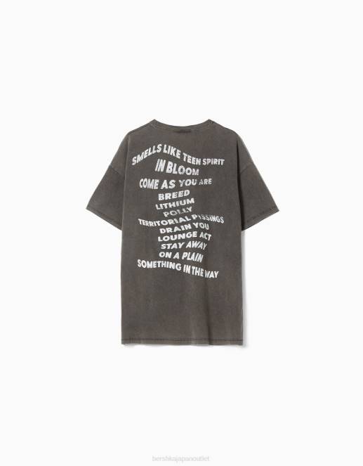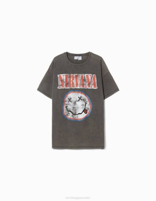 女性 Bershka ニルヴァーナ プリント 半袖 Tシャツ 6044556 衣類 グレー