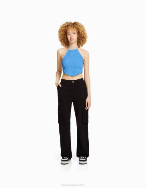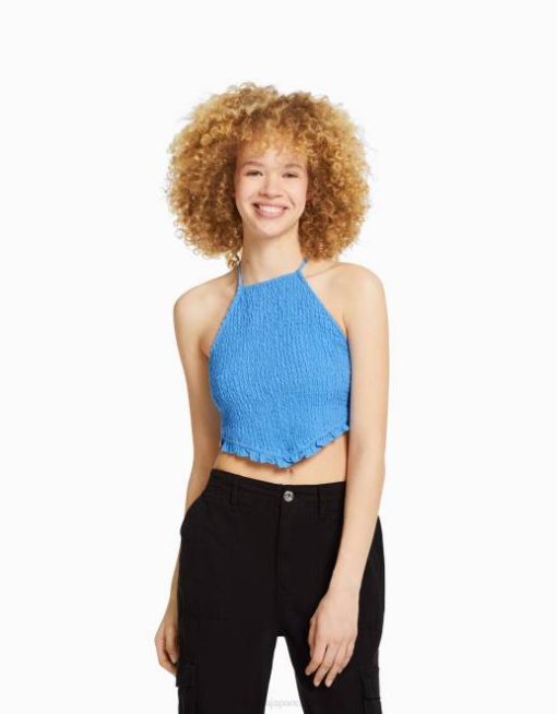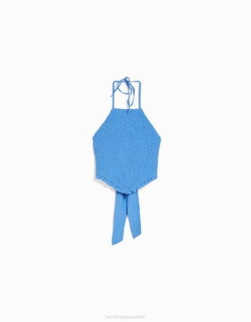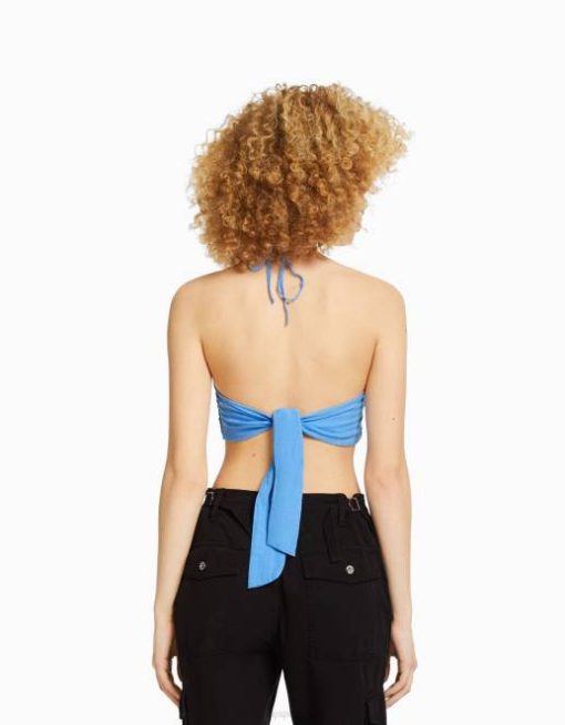 女性 Bershka ネクタイのディテールとシャーリングゴムが付いたホルタートップ 6044891 衣類 青