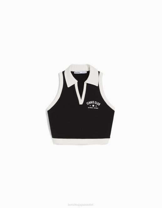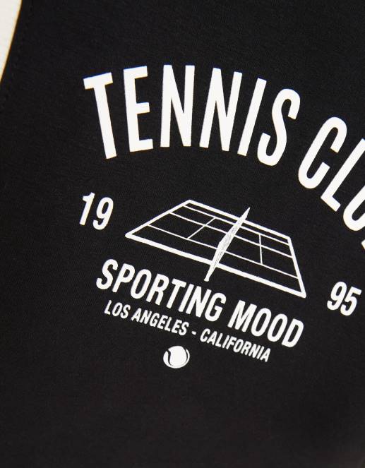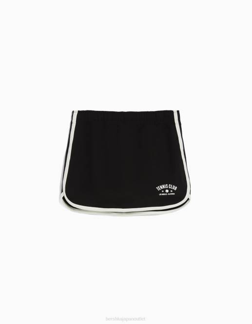 女性 Bershka ノースリーブのプリントスウェットシャツとスコートのセット 60442043 衣類 黒