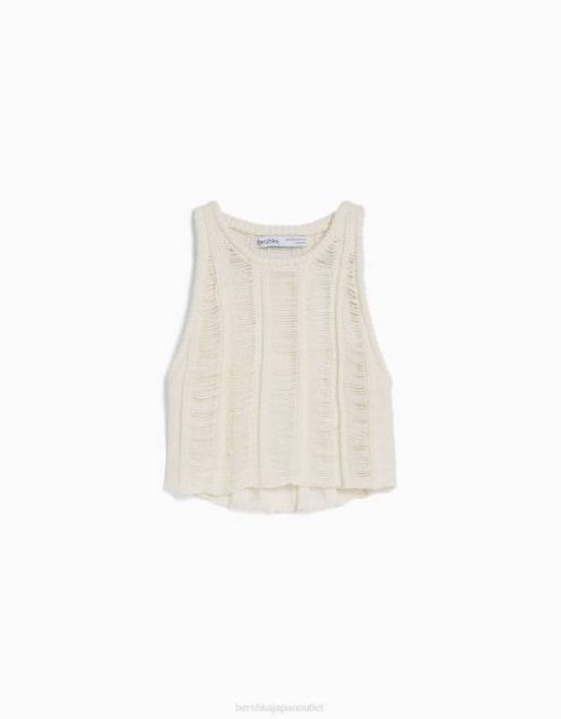 女性 Bershka ノースリーブオープンニットトップ 60441843 衣類 クリーム