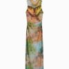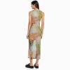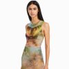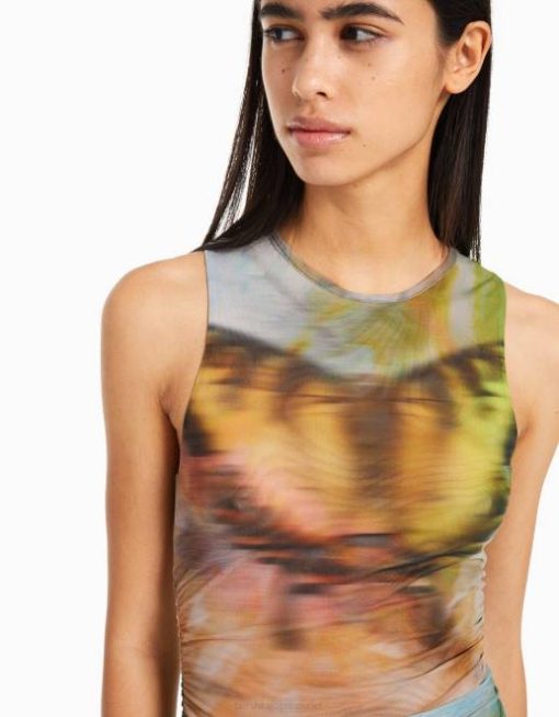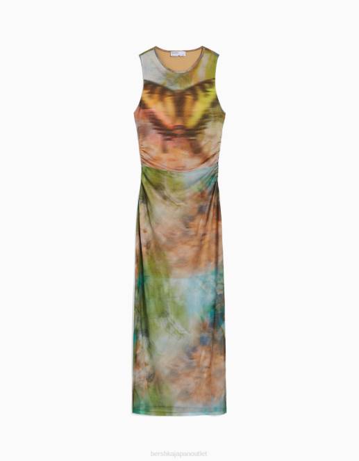 女性 Bershka ノースリーブ プリント チュール ミディドレス 604487 衣類 カーキ