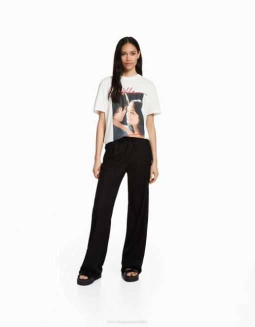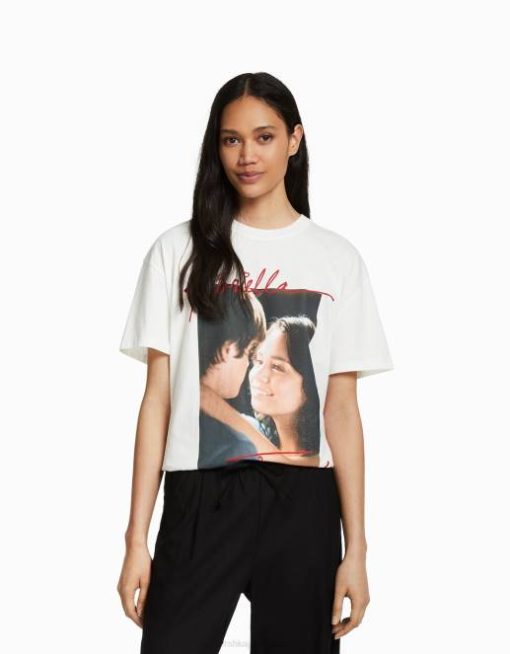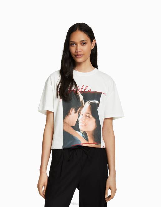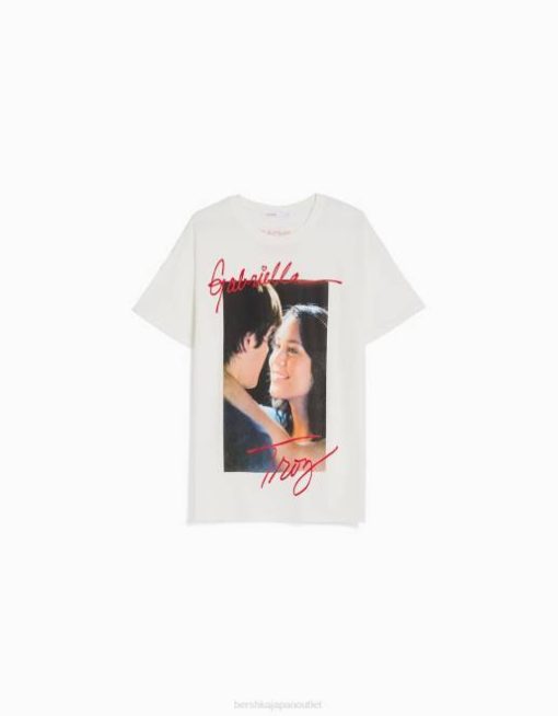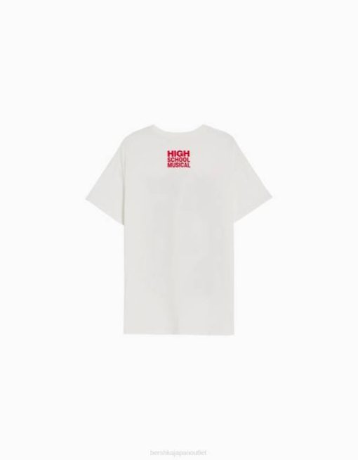 女性 Bershka ハイスクールミュージックプリント半袖Tシャツ 6044485 衣類 白