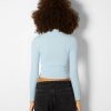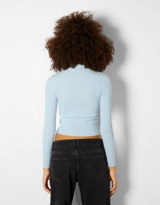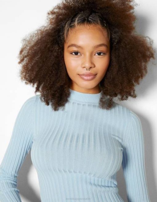 女性 Bershka ハイネックリブセーター 60441024 衣類 ライトブルー