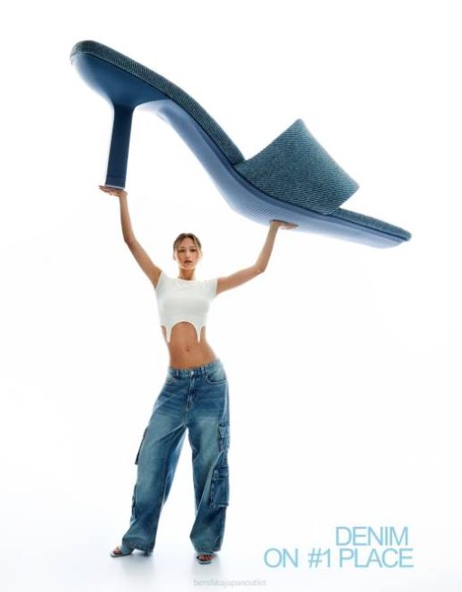 女性 Bershka ハイヒールのデニムサンダル 60441900 履物 青
