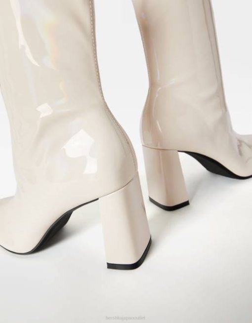 女性 Bershka ハイヒール パテントスタイル フィットアンクルブーツ 60442320 履物 生成り