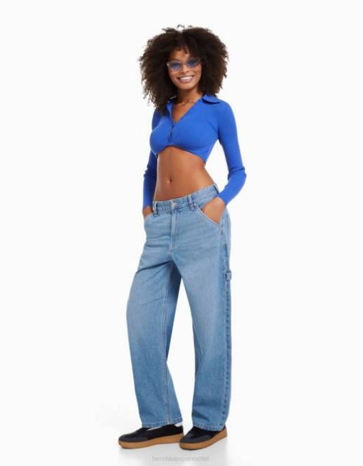 女性 Bershka バギーカーペンタージーンズ 60441596 衣類 ライトブルー