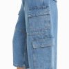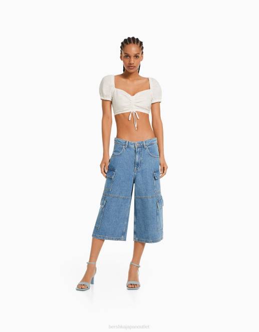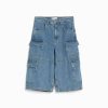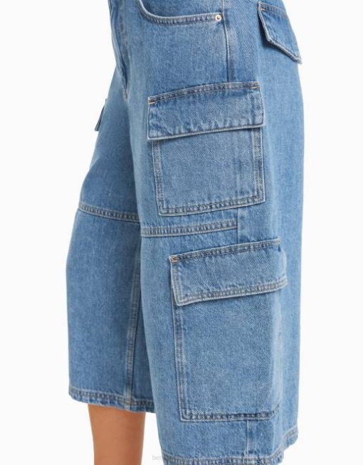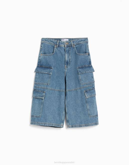 女性 Bershka バギーデニムカーゴバミューダショーツ 60441391 衣類 ライトブルー