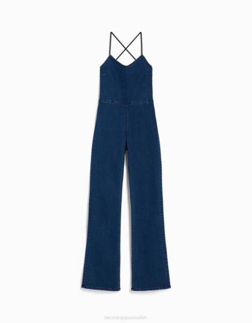 女性 Bershka バックにカットアウトを施した伸縮性のあるデニムジャンプスーツ 604462 衣類 ライトブルー