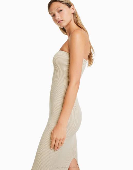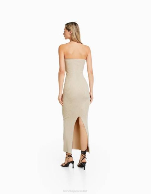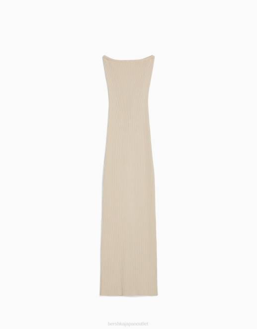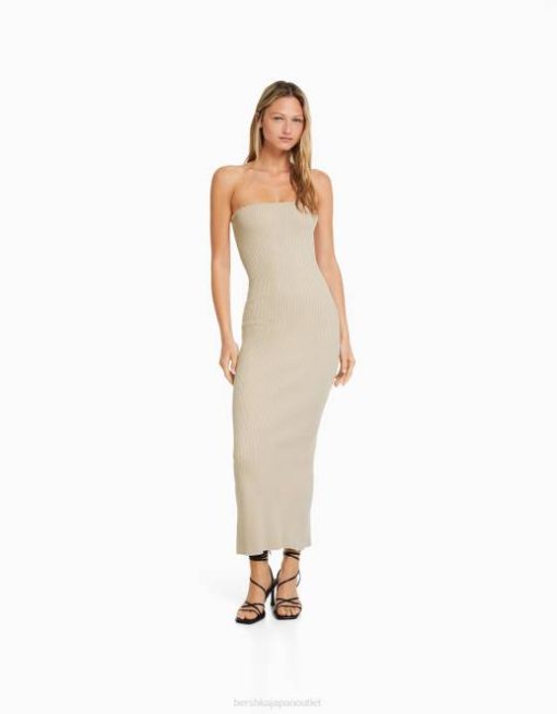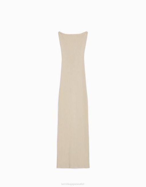 女性 Bershka バンドゥネックミディドレス 604442 衣類 ベージュ